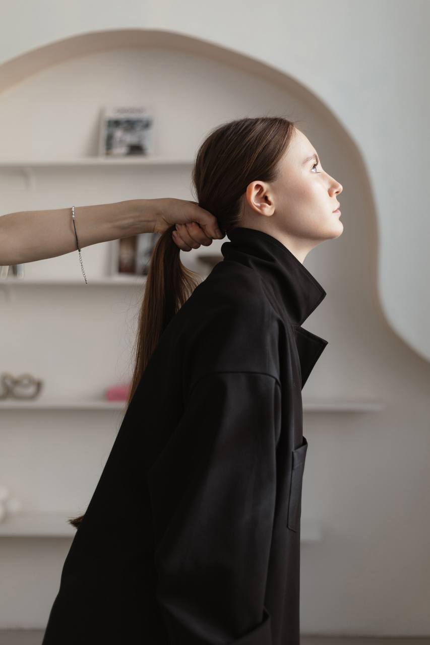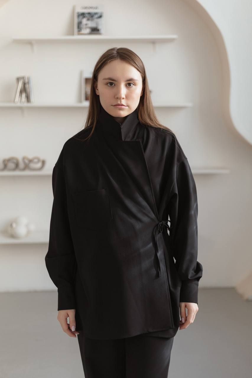 У него вместо пуговиц завязки. Ворот можно носить как классический, так поднятый, форма и удлиненные рукава( что идеально для высоких людей).